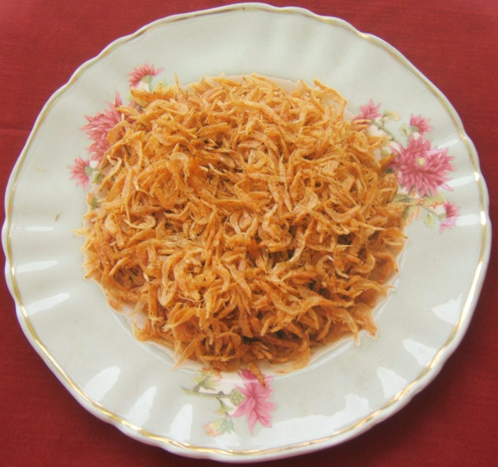 Soak dried prawns for a couple of hours or more. Clean. Boil in a little water till dry. Then mince. Use as required. Boil the oil, add a few curry leaves, then the ground and cut masalas and sugar. Fry well, add salt and vinegar. A little later put in the minced prawns. Cook till reddish brown in colour to a thick consistency on a low fire till the grease floats on top.